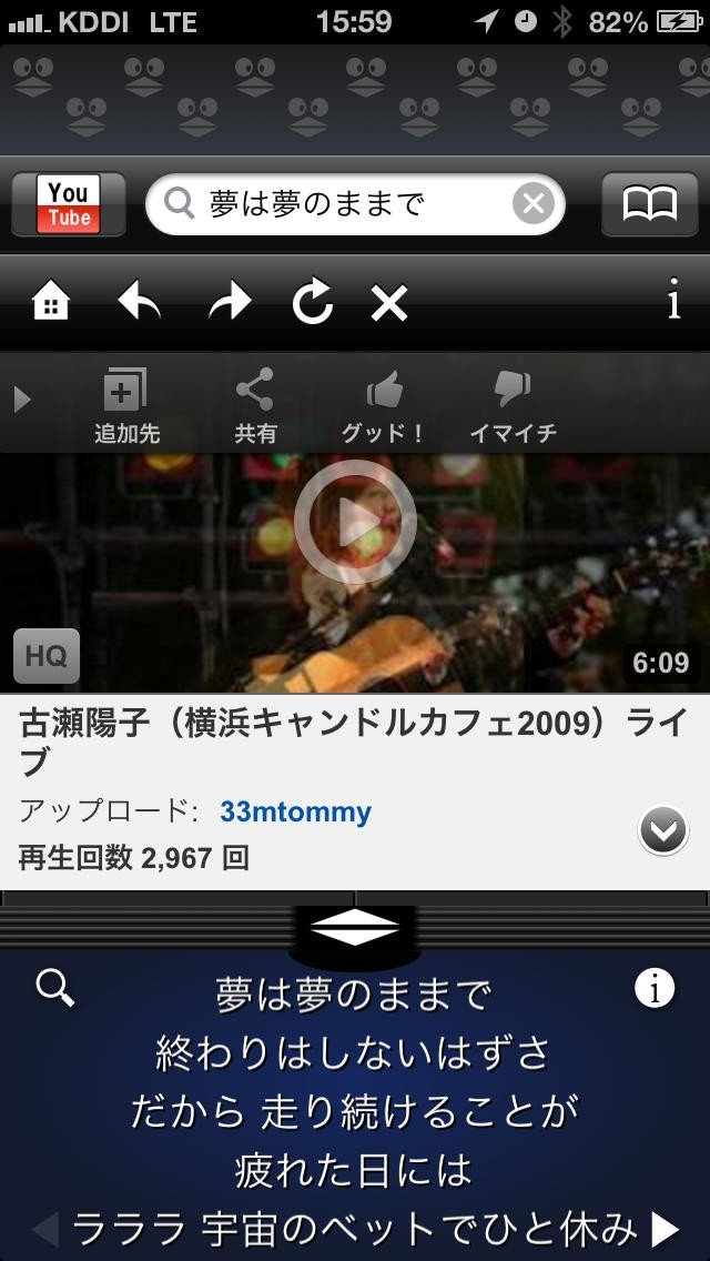 歌詞をインターネット上で探して同時に動画を再生することができる!