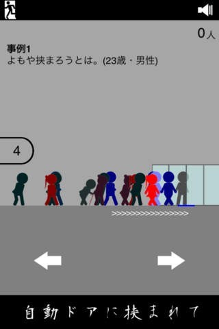 次々出てくる老若男女を右に左に動かしながら、タイミング良く自動ドアを通り抜けるゲームです。