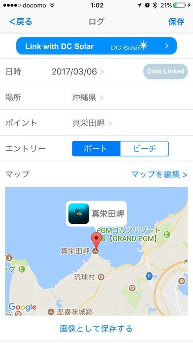 ダイビングポイントの記録機能も用意!位置情報の一覧も楽々表示!