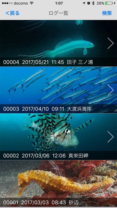 ログブックには写真の添付も行えるため、ダイビング地点周辺の写真や水中の写真を登録し、思い出として残すこともできます。とっておきの写真を登録しておけば、後程見返した際にも判りやすくなります。