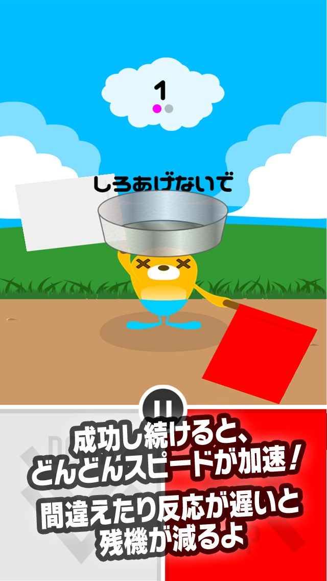 ゲーム画面下部には赤と白のパネルを設置。指示に合った色のパネルをタップで選択しよう!