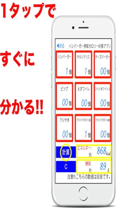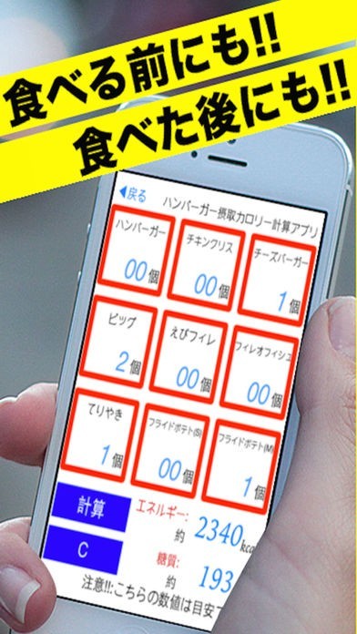 ハンバーガー摂取カロリー計算アプリ ~無料でダイエット~のスクリーンショット