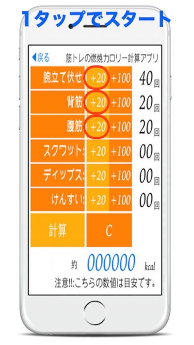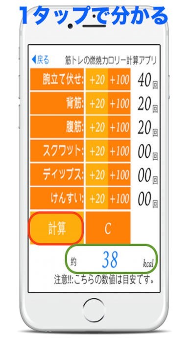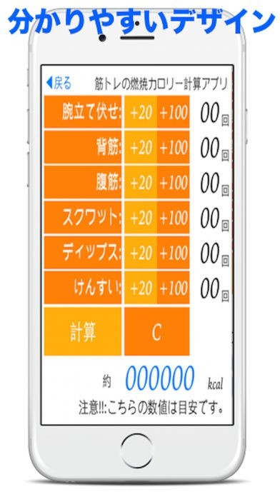 回数からの筋トレ燃焼カロリー計算電卓アプリ ~無料で人気アプリ~のスクリーンショット