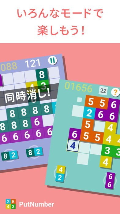 数字パズルゲーム「PutNumber」では、都合によって選択可能な2つのモードを用意しています。たっぷり遊びたい方に最適なエンドレスモードは、時間制限なしでじっくりゲームをやり込めるのが特徴。夜眠る前の脳トレとして、あるいはゆったりとした休日の楽しみとしてもプレイすることができるでしょう。少しだけ遊びたい時には時間モードがぴったりです。時間制限付きのステージによって、緊迫感溢れるプレイが可能。移動中の車内や、電車待ちの数分間にさくっと遊びたいビジネスマンにも最適となっています。数字を集めて消すだけの簡単ルールながら、頭を使う脳トレとしても幅広い年代で利用することができます。