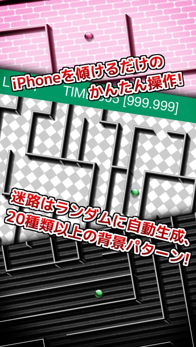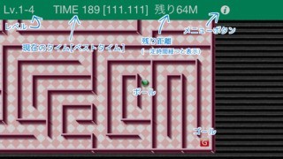 このゲームのルールは簡単、画面にあるボールをスマホを傾けてゴール地点まで運ぶことです。すき間時間でプレイするよりも自宅などでじっくりプレイする方に向いています。しかしルール通りにゴールを目指そうにも画面は複雑な迷路になっていてしかも巨大です。ゴールの距離はm(メートル)で表示されますが基本は手探りで進めないといけません。ですがその巨大な迷路を突破した時の快感はクセになるものがあります。ゲームを進めていくと重力変化や壁に当たったときのバウンドの仕様も変わって、中々思うように進めなかったりしますが、頭を使ったり捻ったりしてどうにかクリアできると嬉しいものです。さらに時間が経つとまたプレイしたくなる不思議な魅力があり、何度でも楽しめます。
