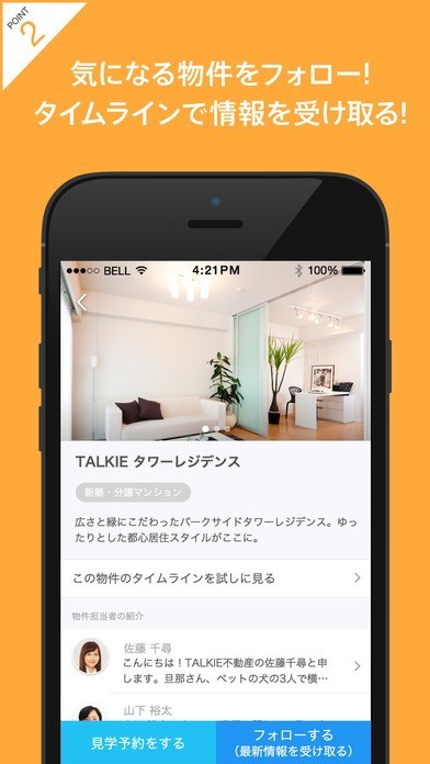 人生の節目ともなる新居購入は慎重に行いたい、気になる物件の情報はもれなくチェックしたい!『TALKIE』は、そんな方にも嬉しい新築・分譲マンション専門の不動産検索アプリです。 気になる分譲マンションを発見したらフォロー機能で即フォロー。物件のみならず周辺環境についてのニュースやトピックスを物件担当者がお知らせしてくれます。 地図を利用した物件検索機能によって、住みたい街のマンションを見つけたり、職場や学校から近い新築物件を新たに発見することもできるでしょう。