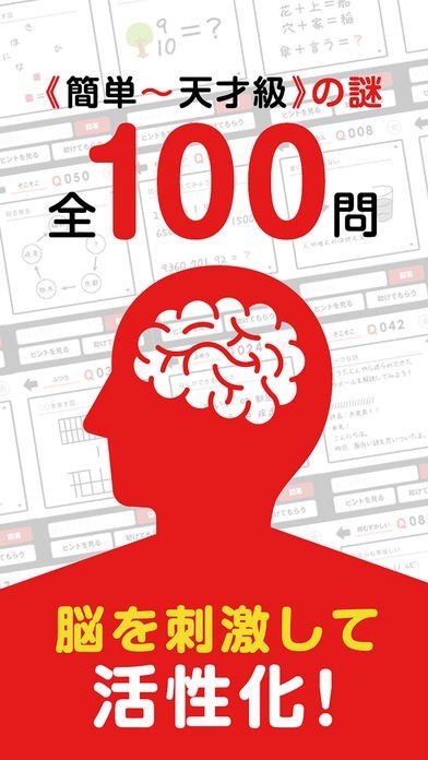 謎解きが100問搭載されており、利用する事で脳の眠っていた部分を起こすことができます。気分をスッキリさせる効果もあるためコツコツ毎日やっていくと効果があるでしょう。