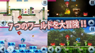 7つのワールドをリンゴさんとアイちゃんが冒険するステージクリア型の2D横スクロールジャンプアクションゲームだよ。