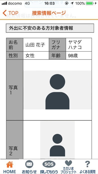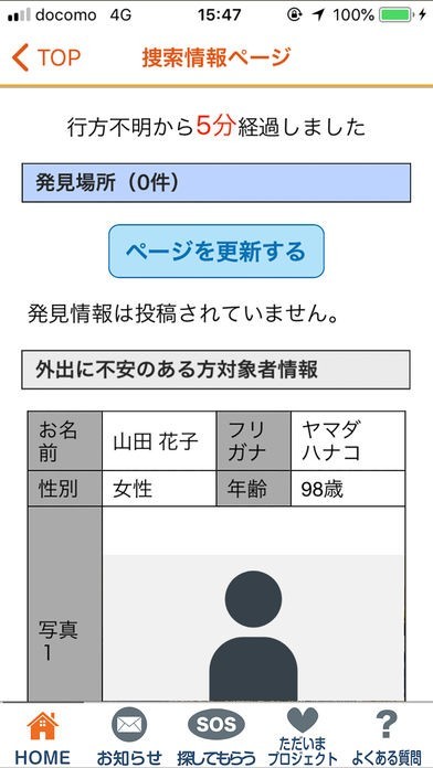 App Storeより引用ご家族や施設などからの行方不明情報がスマートフォンに届きます。