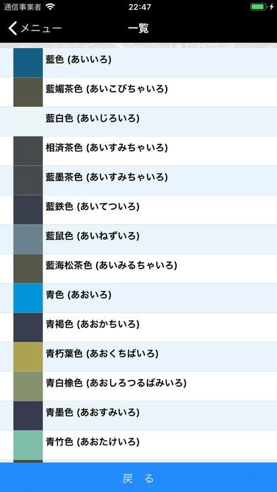 日本の文学作品を読んでいて、名前を聞いても具体的な色がイメージできない時に使用してください。画面上に実際の色が表示されるので、視覚的にどんな色なのかわかります。