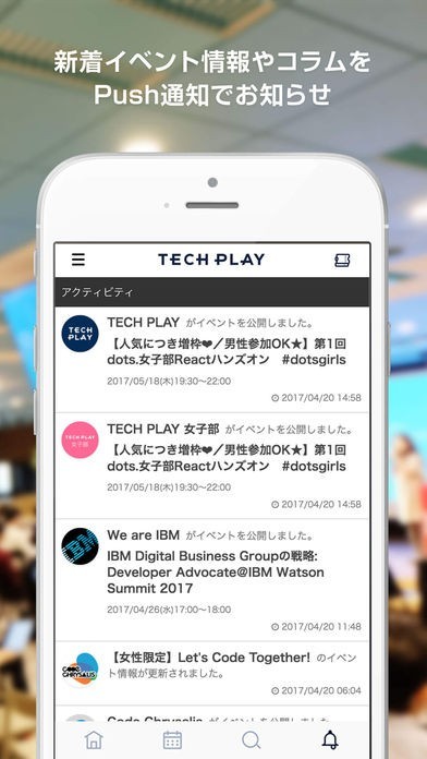 App Storeより引用TECH PLAY(テックプレイ)では、テクノロジーに関わる様々なイベント・勉強会・講演会・交流会・カンファレンス・セミナーなどの情報を、国内でも有数のイベント情報サイトより集約し掲載しています。