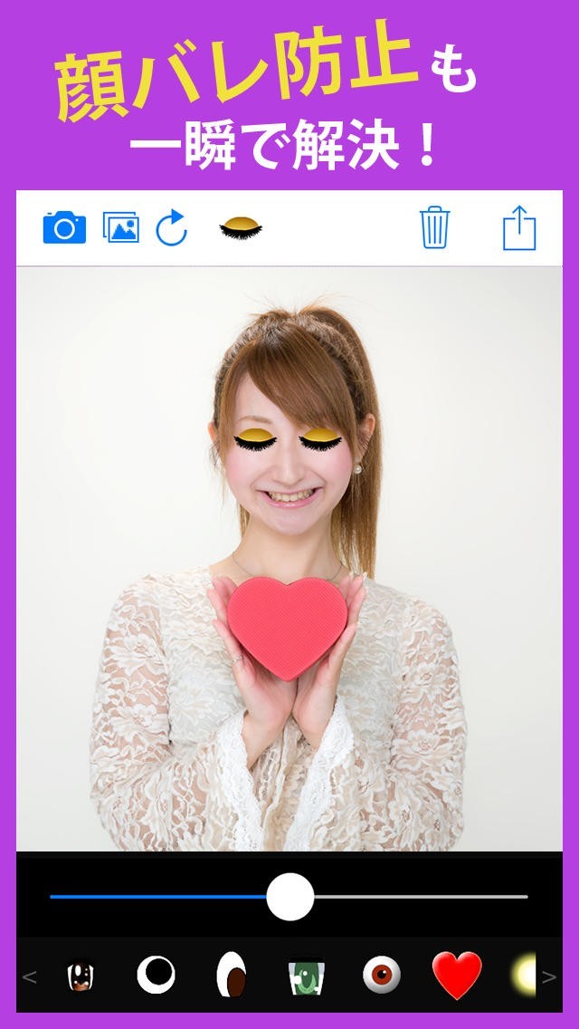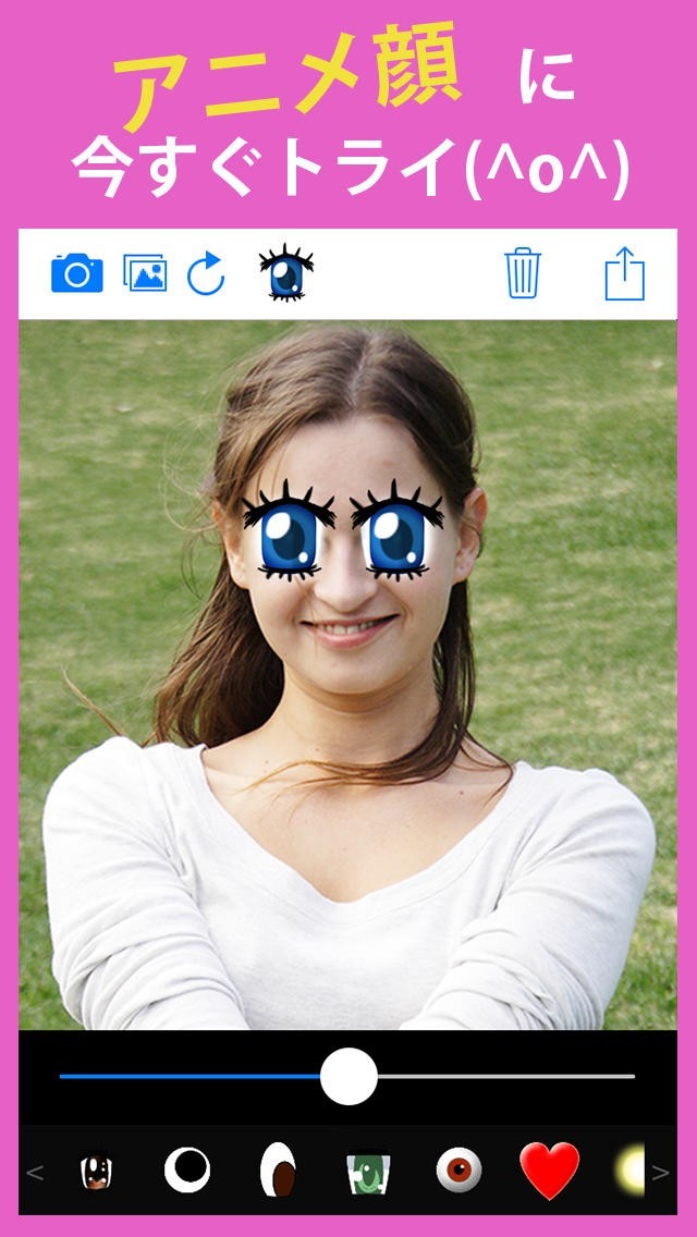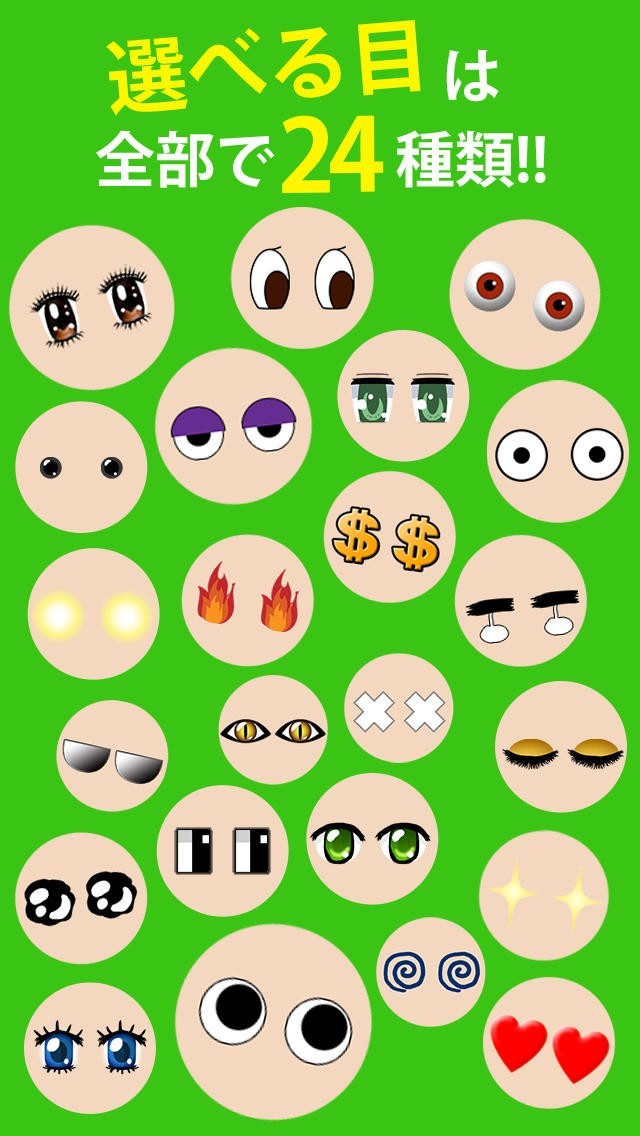 子供のころにアニメやマンガに出てくるキャラクターのような目になったらいいな、と思ったことがありませんか?このアプリではスマートフォンのカメラで撮った自分の写真をアニメのキャラクターのような目に簡単に加工することが出来るようになっています。ボタン一つで人の目の部分を自動的に認識してくれるので後は自分の気に入った目を選択するだけです。選べる目の種類は24種類用意されていて、ハートマークやお金マークなどその時の感情を表したりすることもできます。