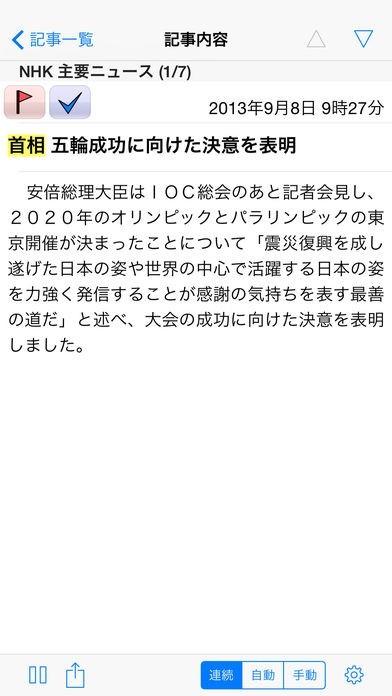 バックグラウンドで読み上げ再生してくれるため、他の作業をしながら手軽に最新のニュースが手に入って便利です。