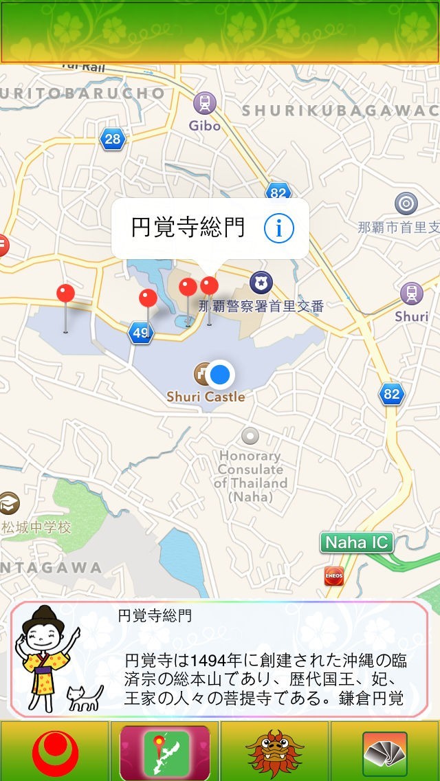 ・「沖縄修学旅行・おぅらい」スポットの位置情報と詳しい説明の閲覧機能