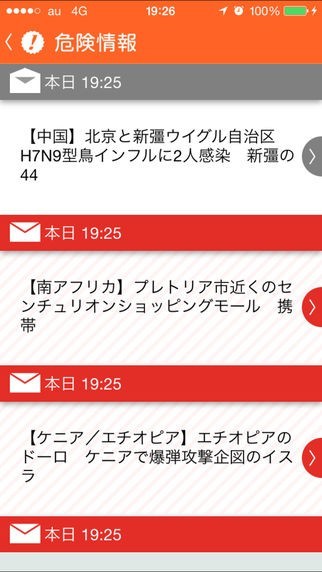 ・海外の主要国で発生した危険情報を自動受信できます。