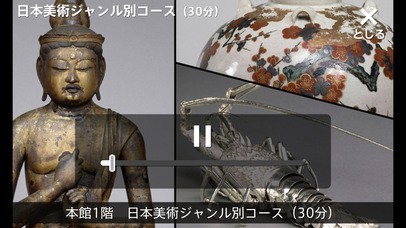 東京国立博物館総合文化展をより楽しめるアプリとして、6つのコースを利用することができます。音声ガイドの解説を聞き、関連画面を見ることで、より深く展示を楽しむことができます。