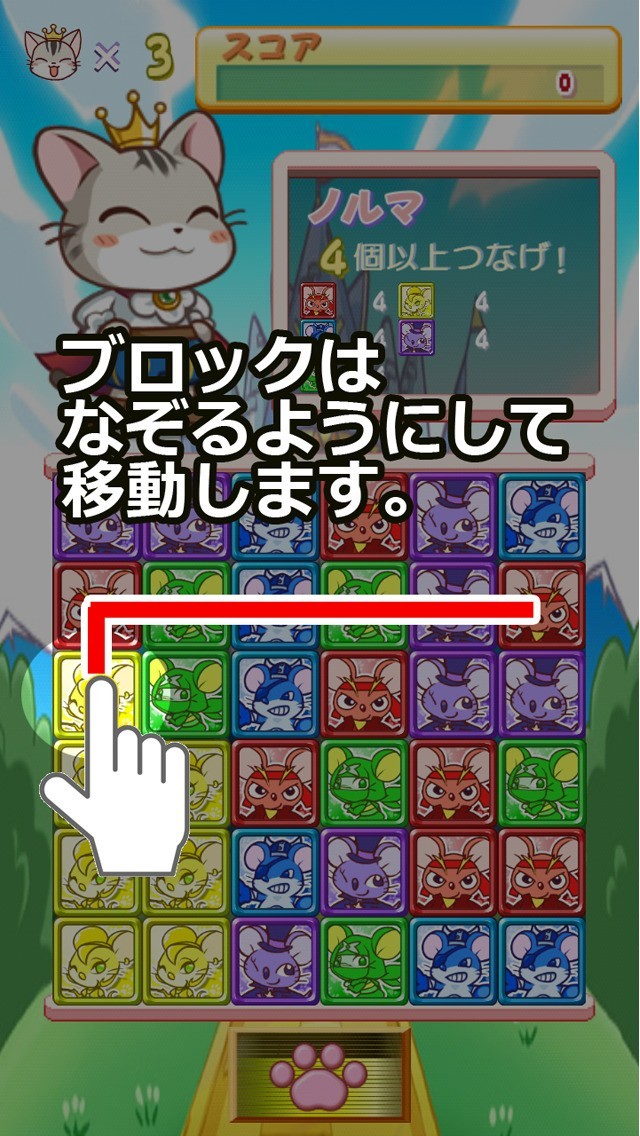 App Storeより引用ネコ王子がネズミたちからお宝を守るためパズルで勝負!