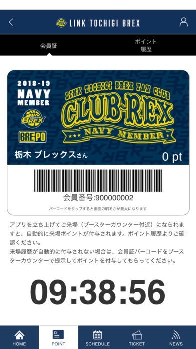 ポイントは、ホームゲームを観戦にご来場いただくと貯まります。