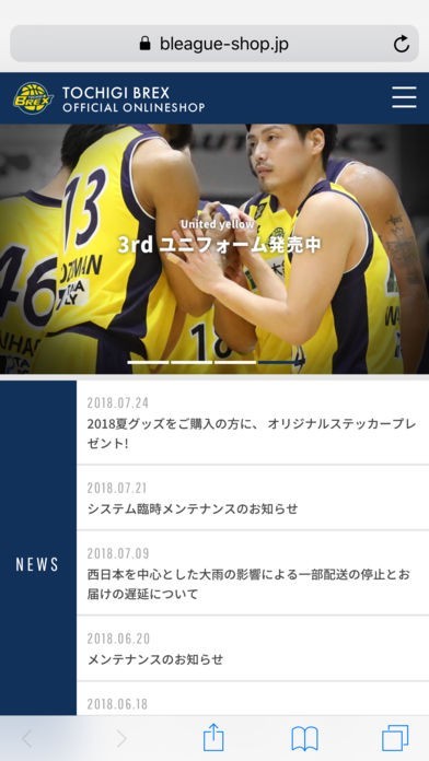 ユニフォームや応援グッズなどが購入できる「BREX ONLINE SHOP」もアプリからアクセス可能です。