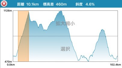 単に距離を測ってくれるだけではなく、標高差や斜度をグラフ表示してくれる