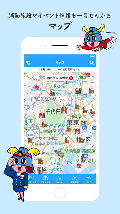 防災情報や消防署マップ、緊急事態に役立つコンテンツが盛りだくさんで、日常の中から自然と防災意識を高められます。東京消防庁がリリースした公式のアプリなので信頼性は抜群です。