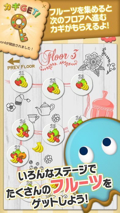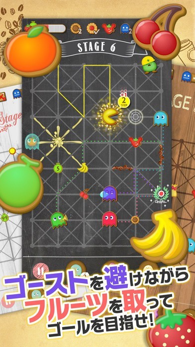 アプリ「もぐもぐパックマン“にやりゴーストの逆襲”(Mogpac)」では、懐かしのゲームキャラクターとして今も根強い人気を誇る「パックマン」の世界がもっとかわいくなった、ほっと息抜きできるゲームを楽しめます。パックマンがゴーストから逃げるという基本設定は同じですが、コース上のフルーツやクッキーをゲットすることがクリアの条件になっているステージがあるなど、どこか可愛らしいゲームになっていて、ちょっとした空き時間で気楽に遊べるのが魅力です。