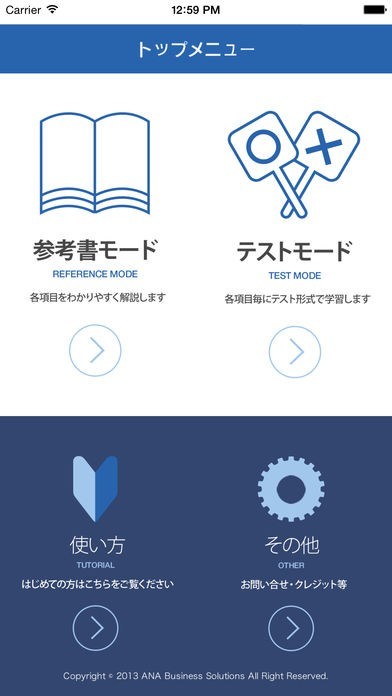 参考書モードは、各項目をわかりやすく解説したモードです。調べたい項目について、リストから選んで学習しましょう。