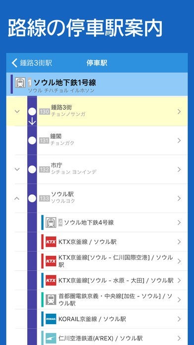 韓国国内全土の乗換に対応!路線やフォトギャラリーなど各駅の情報にも強い