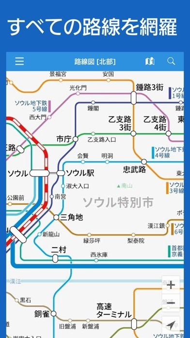一部地域の案内とは異なり、韓国全土の鉄道・地下鉄に対応している路線図アプリです。韓国語や日本語のほか英語といった複数の言語に対応しているため、多国籍のメンバーで旅行を計画する際にも活用できます。個々の駅情報にも強い点が魅力となっており、路線以外にも写真で駅を確認することも可能です。また、路線のダウンロードにも対応していますので、電波の届かないオフラインエリアでも路線図の確認ができます。