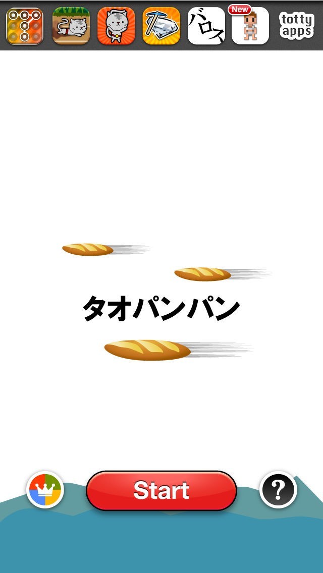 空飛ぶタオパンパンを操作して飛行距離の記録更新を目指すゲームです。フランスパンに乗って空を飛ぶキャラクターの演出がコミカルで思わずクスッと笑えるデザインになっています。ゲームオーバーしてしまってもすぐにリトライすることができるので最長飛行距離の記録更新を目指して何度もプレイすることができます。早押しゲームの要素があり、画面上に!!!のマークが登場したらすぐに画面をタップする反射神経が求められます。友達とワイワイプレイすると楽しいゲームです。