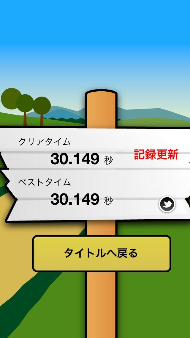 "カラフルーツ"は、可愛いネコがフルーツを掲げて運んでくるので、ネコが掲げるフルーツと同じフルーツの色を選択していくカジュアルゲームとなっています。ルールは同じ色を選んでタップするだけの、非常にシンプルなゲームとなっています。また、1プレイの時間は30秒程と短く、小さいお子様から大人まで、手軽に楽しむ事ができる仕様になっています。ネコが運ぶフルーツは、スイカ、りんご、ぶどう、レモンのいずれかで、途切れる事なく次々と運んでくるので、いかに素早く反応して色をタップできるかが鍵となってきます。ただし、謝って違う色を選択してしまうと、クリアタイムに3秒加算されてしまう為、記録更新を狙う時には注意が必要です。各色のボタン配置を記憶すれば、優位にゲームを進められると言えそうです。