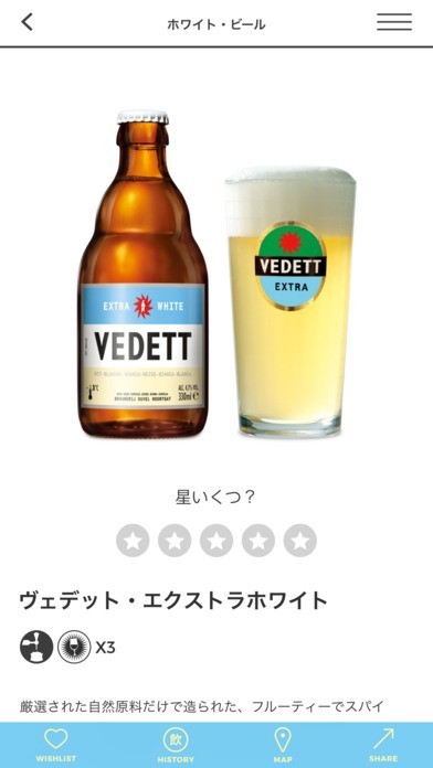 気になるビールは「ハート」ボタンでお気に入りに、飲んだビールは「飲」ボタンでMY ビール消費に登録。あなたが飲んだベルギービールのグラスの数、量、タイプを簡単に把握できます。