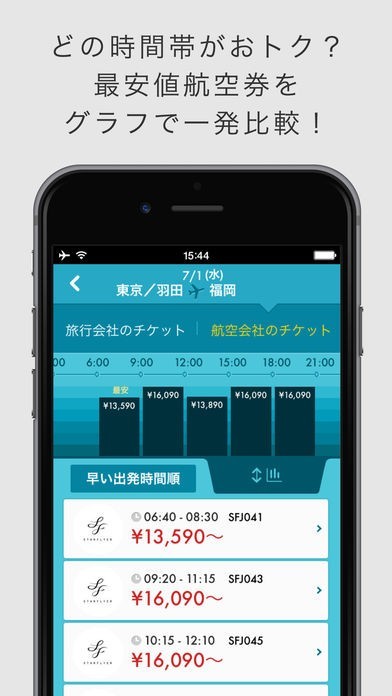 航空会社のチケットと旅行会社のチケットをそれぞれ分けて見ることが出来て好きな方を選択可能