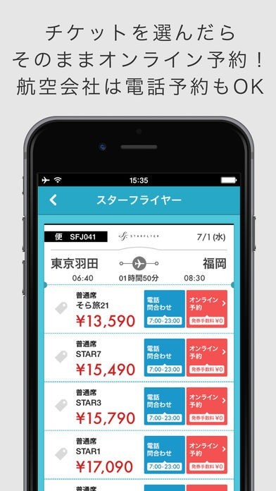 11社もの航空会社のリアルタイムな空席状況を把握できるので、パッと思いついて旅に出ようと思った場合でも飛び立つことが出来るようにしてくれます。 また、航空会社のチケットと旅行会社のチケットをそれぞれ分けて見ることが出来るので、好きな方を選ぶことができます。 さらには、安い順に検索することも出発時間順に検索することも出来るので、すぐに旅立ちたい場合ととにかく安価な旅がしたい場合の両方に対応することが出来ます。 加えて、見つけたらそのままオンラインで予約が出来たり、電話でも予約をすることが出来る。