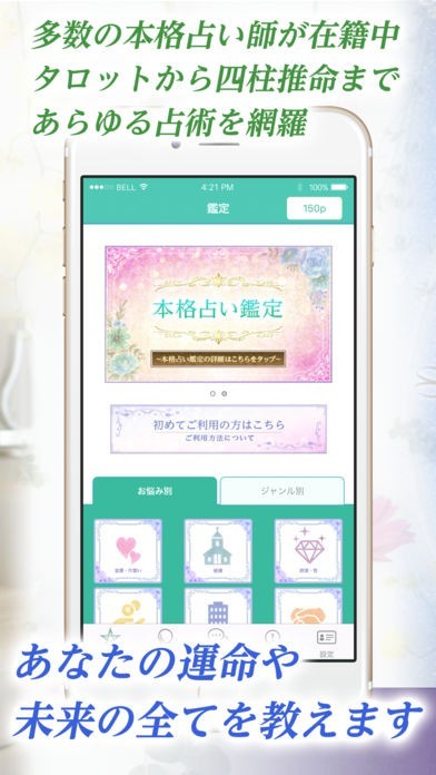 写真や画像の送信ができます。手相や顔の写真を送信すると手相人相を占うことも可能です。悩み別やジャンル別の占いが選べるので、占い初心者の方はどの占術が適しているのかがわかります。