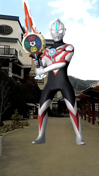 ロゴにかざすと古代怪獣ゴモラが3Dで出現します。
