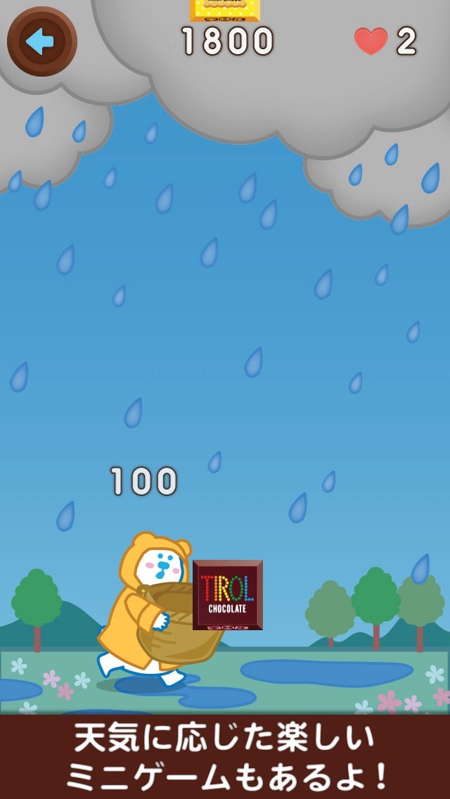 メリット:簡単なミニゲームやチロルチョコのキャラクターなど、普通の天気予報アプリでは楽しめないジャンルがセットになっている点が魅力