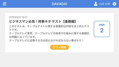 App Storeより引用オンラインテストアプリ「DAVADA!」は、ビジネスにすぐ役立つ知識や雑学・時事ネタをまとめたeラーニング「DAVADA!」の iPhone 用アプリです。