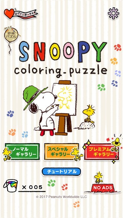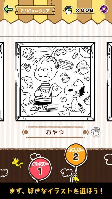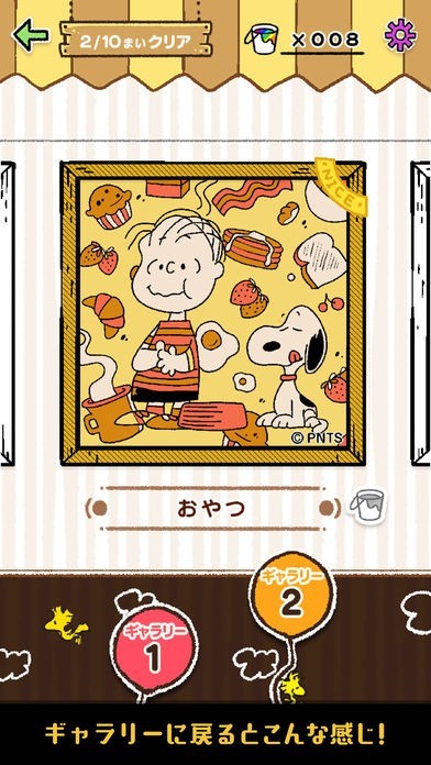 世界中で大人気のキャラクタースヌーピーの塗り絵パズルのアプリになっております。 ただの塗り絵だけじゃなく、ただのパズルでもない新感覚のゲームとなっており、お子様だけでなく大人の方も楽しめるパズルゲームとなっております。 予め用意された完成された絵をもとに、真っ白な絵を自分で塗りつぶしていき同じ色が隣り合わないように4色の色を使って1枚の絵を完成させていきます。 スヌーピーの中に登場するキャラクターを自分で塗り絵が出来ることもあり可愛く楽しめるアプリです。