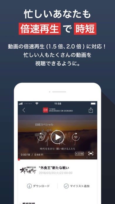 テレビ東京の経済番組を見ることができ、ダウンロードや倍速再生などの機能が便利です。