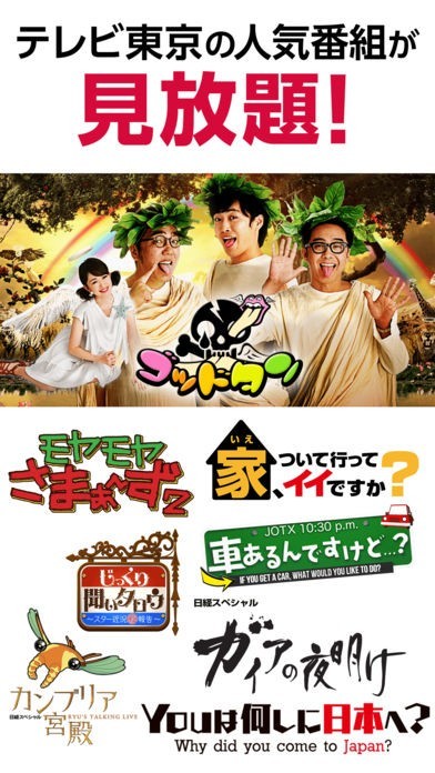 テレビ東京で放送された人気番組を無料で見ることが出来るアプリ!