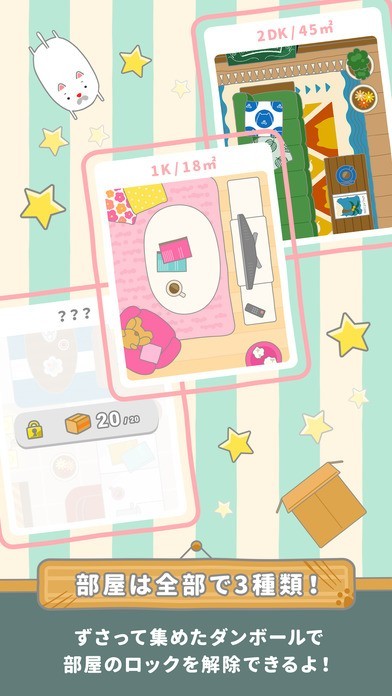 「ねこずさる。」では、キュートなネコを引っ張ってダンボールにショットインさせる癒し系アクションゲームアプリです。タップしたまま上下に動かし距離を調節してダンボールにショットインするように狙いを定めます。あとは意をけして放すだけ。見事ホールインするとアイテムを獲得することが出来ます。ランダムで現れるアイテムをどんどん獲得していけば新しい猫がアンロックされます。ネコには様々な個性があり、それを利用してゲームを進めていくという訳です。希にレアねこちゃんが出現するかもしれません。