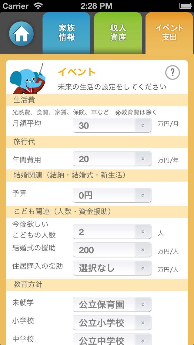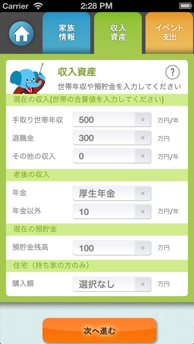 教えて!未来ゾウ(人生設計,貯蓄,年収,資産,老後,年金,収入,世帯年収)のスクリーンショット
