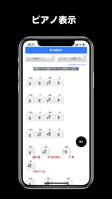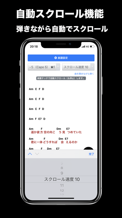 楽器を弾きながら見るのに重宝する『自動スクロール機能』