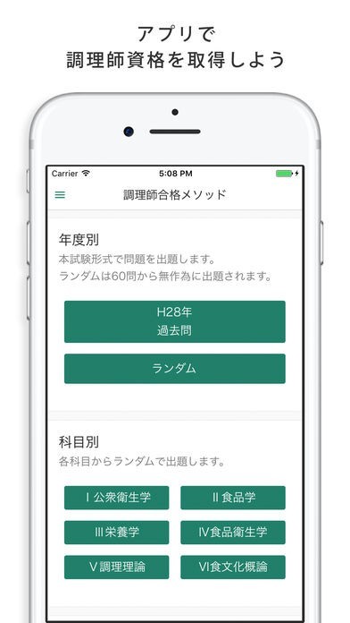 調理師試験の対策に役立つ過去問を収録した学習アプリ