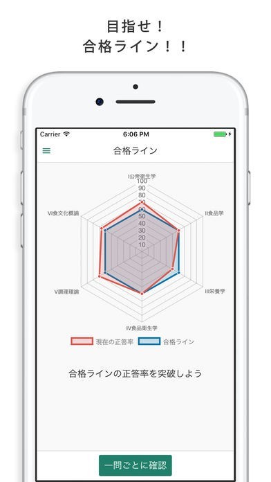 合格ラインに達しているかグラフで確認できる