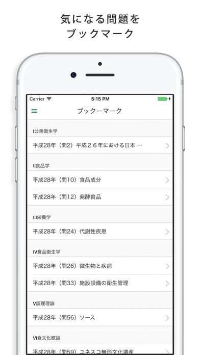 問題をブックマークに登録することができるので、正答率の低い問題などをブックマークしておけば簡単に復習できます。ブックマークに登録された問題だけをランダムに出題することも可能です。