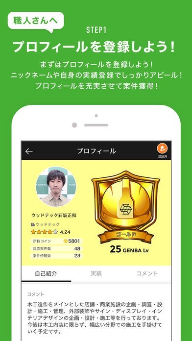建設職人の直接受発注に特化した、これまでになかったアプリです。