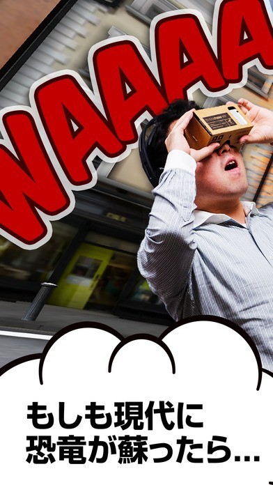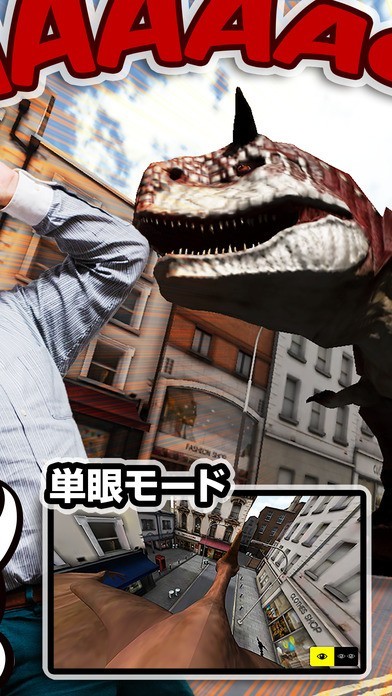都市に現れた巨大な恐竜のCGをVRで楽しめるアプリ