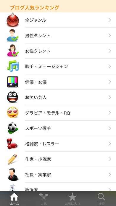 芸能人のブログをジャンル別に検索できるアプリ。ランキング表示のため人気ブログや注目ブログが一目で分かる